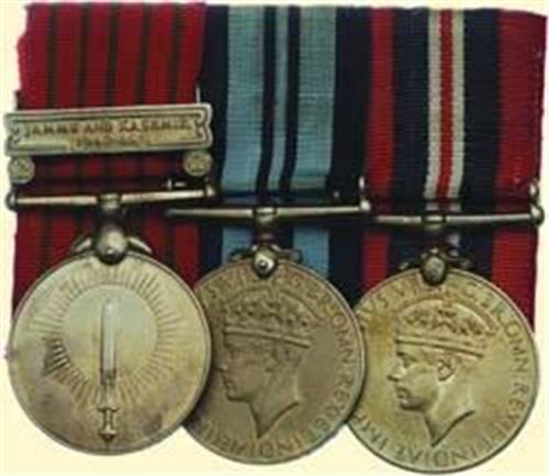 Group of Three (India 1939-1948); Indian General Service Medal (1950?) with clasp "JAMMU AND KASHMIR 1947-48", India Service Medal 1945, War Medal 1939-1945; all named "1200061 NK. AMAR SINGH, ARTY. (R. I. A.)", all white metal; mounted for wearing. Small signs of wearing!