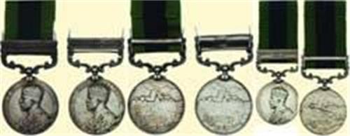 India General Service Medal 1909; lot of three: two medals type II (George V Kaisar-i-Hind); silver, named "271 SEP. MOHD. MOOSA. 4 H. PRS. and BR. DHARMAJI. R. BO. S&M.", both with ornamental claw swivel supensions and "WAZIRISTAN 1921-24" clasps; one medal type III (George V...Indiae Imp.); silver, named "9040 SEP. ALAF KHAN. KURRAM MIL", French swan mark, with ornamental claw swivel suspension and "NORTH WEST FRONTIER 1930-31", (cleaned); two with ribbons. Signs of wearing, cleaning and contact.