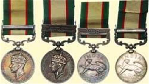 Lot of Two: silver, named "33088 SEPOY AFZAL KHAN. F. C." with "NORTHWEST FRONTIER 1936-37"-clasp; named "7648 SEP. AKBAR KHAN. TOCHI SCOUTS." with "NORTHWEST FRONTIER 1937-39"-clasp. Both with ornamental swivel suspensions and original ribbons. Small signs of wearing, patina!