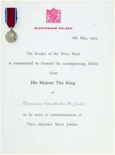 Miniature medal, silver, with original ribbon. With awarding document to Mr. Constantin M. Laptew from 6th May 1935, punched on the left side.