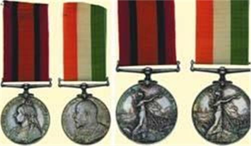 Two: Queen's and King's South Africa Medals 1899, 1902; QSA: silver, named "TPTR. M. R. PALMER - BEAVIS R. H. A."; KSA: silver, named "TPTR. M. R. PALMER - BEAVIS R. H. A.". Both with swivel suspension bars, no clasps, new ribbons. Signs of wearing, edge bruising.
