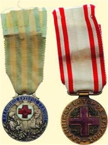 Lot of Two: Red Cross Medal 4th class; silver, obverse partially enamelled; Red Cross Medal 1940-1941; bronze toned, obverse partially enamelled; both with original ribbons. Small signs of wearing, very attractive!