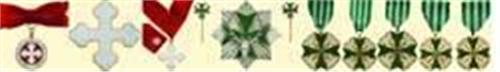 Order "Deum Diligite Animalia Diligentes": neck and breast badges, bronze gilt, obverse partially enamelled, reverse blank, with green and white striped ribbons (6), small breast star with superimposed stag horns, small pins (2); Order of the Orthodox Hospitallers: three different badges, bronze gilt, obverse enamelled, with ribbons. Good modern quality!