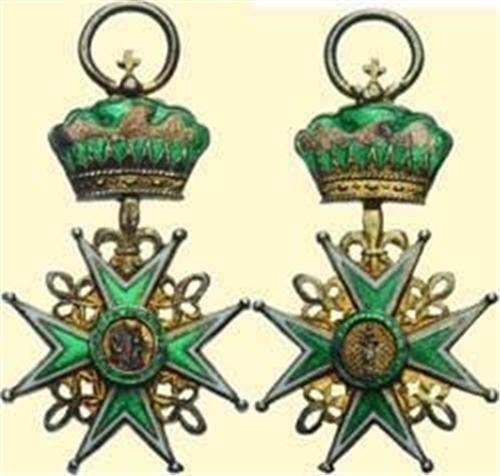 Miniature Badge; silver slightly gilt, both sides partially enamelled, with fixed crown above and suspension ring. Fine quality from second half of the 20th century, but enamel damages on crown!