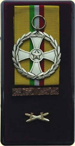 Breast badge, tombak silver plated, with suspension ring; in original plastic box of issue with ribbon, swords-clasp and clasp "AIRONE".