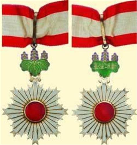 Decoration - 3rd Class (Commander); Neck Badge, silver gilt and enamelled, with flower above and original suspension loop and short piece of ribbon; size 54 x 85 mm. Small enamel damage on both sides at the link, a few enamel cracks and knocks.