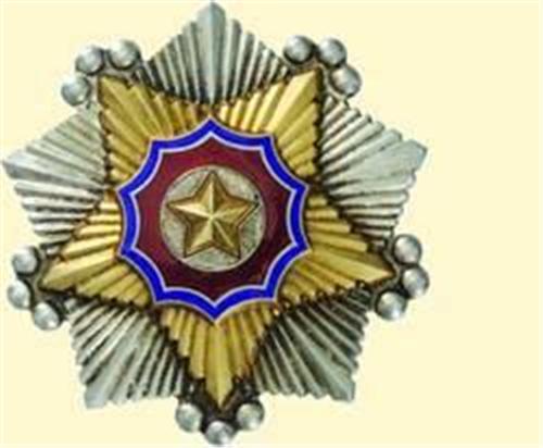 Decoration - 2nd Class; breast badge with screw back, silver partially gilt and enamelled, one part version, reverse with Korean inscription, numbered "5...". Fine quality with small patina!
