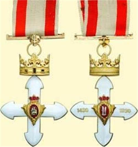 Officer's Cross (4th Class); breast badge, silver gilt and enamelled, stones on crown are missing, with ribbon bar and small piece of original ribbon. Tiny enamel damage near crown suspension. Otherwise excellent quality and very fine condition!