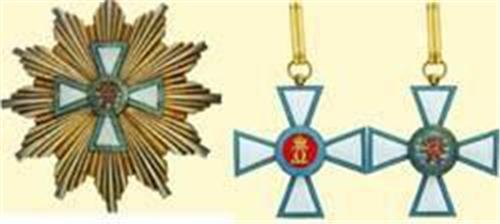 Grand Cross - Set; sash badge, bronze gilt and enamelled, with original suspension loop (maker's mark "A.B."); breast star, bronze silver plated and gilt, superimposed badge enamelled, with wide tapered pin and two side hooks on reverse; diam.: 84 mm. Badge with small signs of wearing, breast star with significant signs of wearing and manipulation (among other things colourless lacquered, small enamel damage).