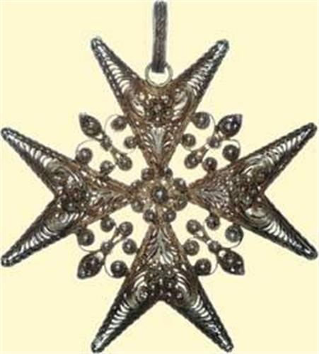 Knight's Cross; neck badge, silver filigree, hallmarked (Malta?), maker's mark (A.?), diam.: 57 mm, with filigree suspension loop. Excellent old jeweller's quality from the end of 19th century in very fine condition!