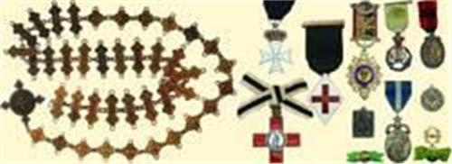 Different breast badges of mainly Masonic background: Cross of League of Mercy 1898; The Buffalos - Past Secretary; R.M.I. for Boys; Maltese like Cross with "Diamonds"; St. John Ambulance Assoc. with chain with year-links (bronze); etc.; silver, bronze, partially enamelled. Interesting, attractive lot!