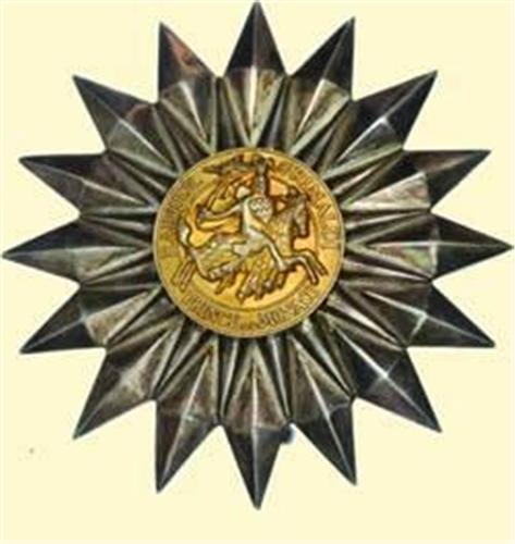 Breast Star; silver, medallion gilt, wide tapered pin and two side hooks on reverse, French hallmarks and maker's mark. Signs of wearing.