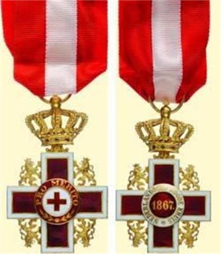 Order of the Red Cross; breast badge 1st class, silver gilt and enamelled, hallmarked, with crown and suspension ring, with new ribbon. Excellent quality and condition! Very attractive!