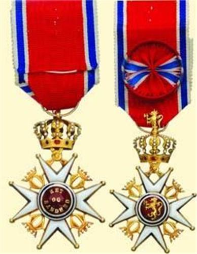 Officer's Cross - II. Type (before 1937); breast badge, gold enamelled, with crown with lion and large suspension ring, with original ribbon with rosette. Excellent Scandinavian quality with small signs of age.