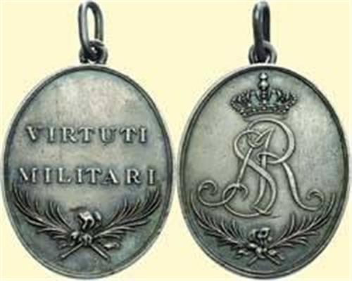 Silver Medal 1792; bronze silver plated, size 34,7 x 43,0 mm (without loop), weight 45 gramme, with small loop and suspension ring, with official "copy"-stamp on loop. Very fine official museum's copy of the I. type of the order's decoration.
