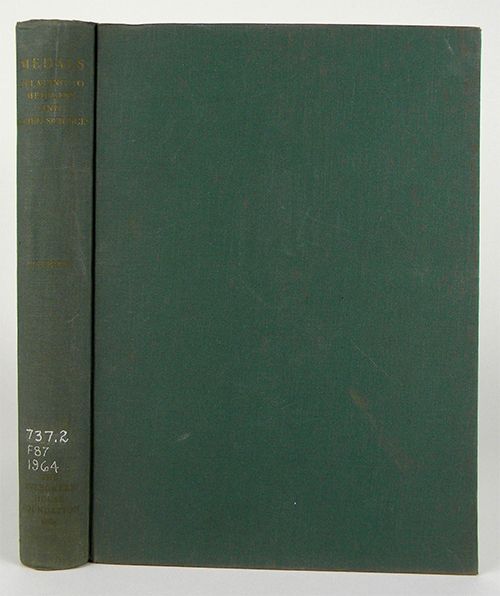 Freeman, Sarah Elizabeth. MEDALS RELATING TO MEDICINE AND ALLIED SCIENCES IN THE NUMISMATIC COLLECTION OF THE JOHNS HOPKINS UNIVERSITY. Baltimore: Evergreen House Foundation, 1964. 4to, original green cloth, gilt. xx, 430 pages; 32 fine plates. Ex library copy, with spine numbering and various stamps. Very good or so. A key work on the topic. Clain-Stefanelli 16354.