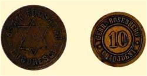 10 BANI, jeton, copper "GEBR. ROSENBERG * CHIOJDENI * - 10 / weapon and date "1904", for wood factories, 21 mm. Rare! E. SCHAFFER, "JETOANE", 421.