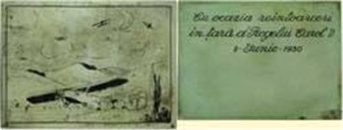 "KING CAROL II'S RETURN TO ROMANIA". Silver plaque 1930, 70 x 53 mm. Obv. Plane landing, escorted by an air squadron. Rv. "CU OCAZIA RE¥NTOARCERI ¥N ºARÅ A REGELUI CAROL II 8 - IUNIE - 1930". Buz. -