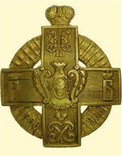 45th Azov Infantry Regiment of Field Marshal Count Golovin / G.D. Boris Vladimirovich; breast badge with screw back, brass slightly gilt, one part construction, screw without nut. Typical version for the ranks. Small signs of wearing, cross on top of crown is missing. (A.-W. 219, Patr.II/4.2.46)