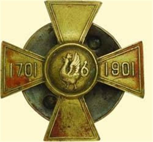 9th Kazan Dragoon Regiment of Grand Duchess of Maria Nicolaevna; breast badge with screw back, tombak, one part construction, screw with wide nut (maker's mark "EDUARD"). Typical version for the ranks. Significant signs of age and wearing! (A.-W. 376, Patr.II/5.1.9)