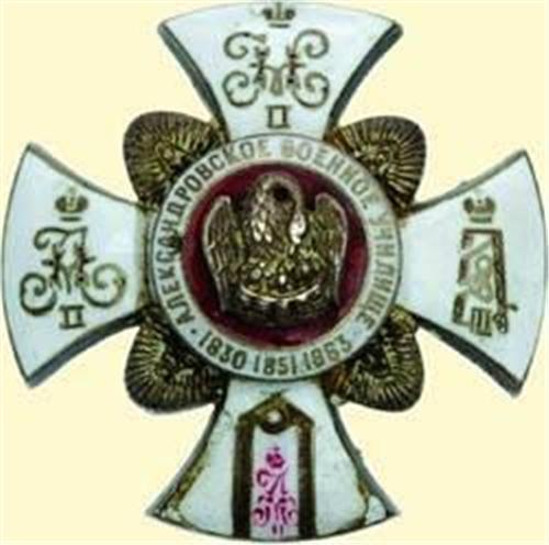 Alexander Military School in Moscow; breast badge with screw back, silver, partially gilt, obverse enamelled, three parts construction, Old Russian hallmark ("84 Kokoshnik Moscow"), maker's mark ("WR" ? / in cyrillic letters), screw and nut. Very attractive Russian badge with some enamel damage and patina. (A.-W. 111, Patr.I/1.2.6)