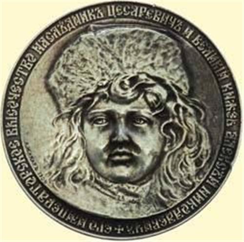 Commemorative Medallion Tsarewitch Alexej; white metal, diam.: 56,5 mm, weight 90,5 gramme, sculptor "A.SCHAKAR 1908", inscription on obverse: "His Imperial Highness Successor to the Throne and Grand Duke Alexej Nikolajewitch", reverse blank. Edge knocks and bruising. (Alexej, son of Emperor Nicholas II, born August 12th 1904, murdered in Jekaterinburg in spring 1918).