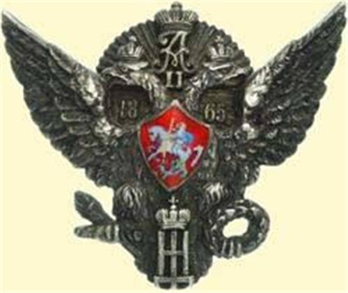 Elisabetgrad Cavalry School; breast badge with screw back, silver, small enamelled and painted breast shield, five parts construction, numbered on reverse "1351", screw with small nut. Very fine Old Russian quality, signs of wearing, patina! (A.-W. 130, Patr.I/1.1.2)