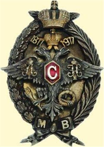 Garrison Troops (100 Years Jubilee of Local Troops); breast badge with screw back, silver, partially gilt, breast shield red enamelled, multipart construction, Old Russian hallmarks ("84 Kokoshniks, Moscow"), maker's mark ("WD" / in cyrillic letters), screw with additional disc and small nut. Excellent old quality with small signs of age! (A.-W. 531, Patr.II/10.1.)