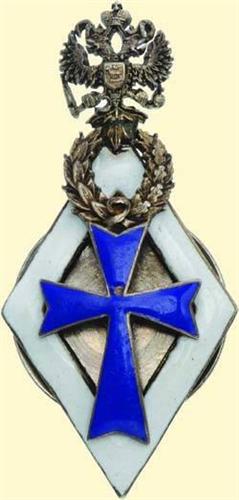 Graduation Badge from Non-Medical Faculties of Imperial Russian Universities; breast badge with screw back, silver, partially slightly gilt, obverse enamelled, three parts construction, Old Russian hallmarks ("84..."), maker's mark ("F.G" / in cyrillic letters), screw with wide nut. Very fine old quality, but connection of rhombus and top eagle is repaired, small enamel damages. (A.-W. 700 sim., Patr.I/2.17)