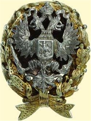 Graduation of the Imperial St. Peterburg Forest Institute; miniature badge, silver gilt wreath, silver central eagle, multipart construction, Old Russian hallmarks ("84 St. Peterburg"), maker's mark ("PK"? / cyrillic letters); screw on reverse with nut. Excellent Old Russian quality and condition! (A.-W. -, Patr.I/2.37)