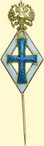 Graduation Badge from Non-Medical Faculties; miniature badge with pin back, gold, obverse enamelled, three parts construction, Old Russian hallmark ("56..."), long pin on reverse, tiny scratched number on reverse "20164". Excellent old quality in best condition! (A.-W. 700 sim., Patr. I/2.17.)