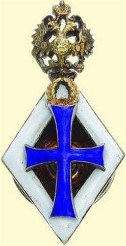 Graduation Badge from Non-Medical Faculties; miniature badge with screw back, silver gilt, obverse enamelled, two parts construction, Old Russian hallmarks ("84..."), maker's mark ("KO" ?), screw with small nut. Very fine old quality! (A.-W. 700 sim., Patr.I/2.17)
