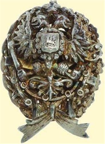 Institute of Surveying of Grand Duke Constantine; miniature badge with screw back, silver, multipart construction, Old Russian hallmark ("84..."), maker's mark("IL" / in cyrillic letters), screw with small nut. Excellent old quality! (A.-W. 710, Patr. I/1.1.18.)