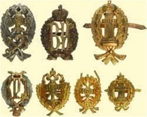 Lot of Seven Miniature Badges; all bronze or tombak, partially gilt, different sizes and qualities, mostly with rivets on reverse. Interesting lot!