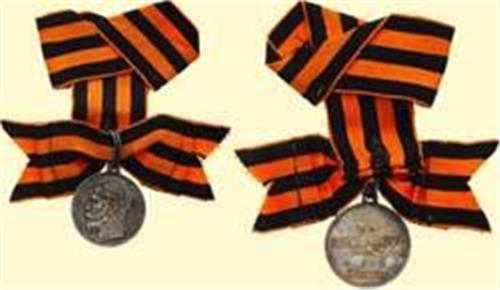 Silver Medal 3rd class / Nicholas II; breast badge, silver, numbered on reverse "No. 21965", with original silver wire suspension loop and original ribbon with bow. Excellent medal with fine patina!