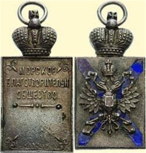 Naval Benevolent Association; Jetton, bronze silver plated, obverse partially enamelled, superimposed imperial Russian eagle, with dedication on reverse; with imperial crown and small suspension ring. (W. / Jet. J-144)