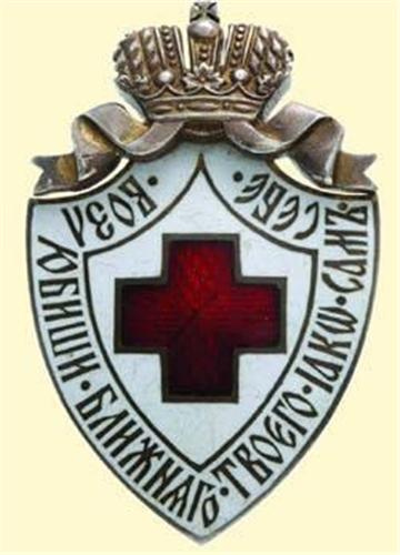Society of the Red Cross - Badge; breast badge with crown and pin back, silver gilt, obverse enamelled, Old Russian hallmarks ("84 Kokoshniks"), maker's mark ("WA" / in cyrillic letters), strong vertical pin on reverse. Signs of wearing, very fine old quality! (A.-W. 853, Patr.I/7.5.)
