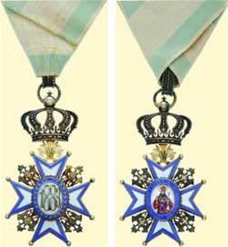 Commander's Cross (3rd class); neck badge 2nd type, silver gilt and enamelled, St. Sava with red coat, large crown, Old Austrian hallmarks (Diana's head 2A = 900 silver standard, Vienna), maker's mark "G.A.S." (SCHEID, Vienna); with original suspension loop and old original ribbon (folded and sewn). Excellent Old Austrian quality, some patina!