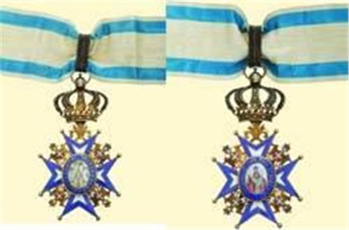 Commander's Cross (3rd class); neck badge 2nd type, silver gilt and enamelled, St. Sava with red coat; with original suspension loop and old ribbon. Small signs of wearing, very attractive!