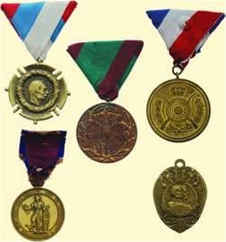 Lot of Five; breast medals: Kosovo 1912, War Medal 1914-1918, War Medal 1876-1877-1878, Medal for Good Shooters, War Solidarity Medal 1916. Some ribbons, partially new, etc.