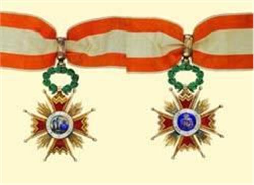 Commander's Cross; neck badge, silver gilt, partially enamelled, obverse medallion with enamel painting, enamelled wreath above, original suspension loop and ribbon. Excellent jeweller's quality in near best condition!
