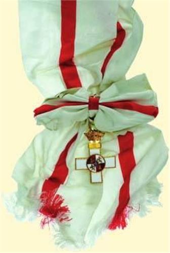 Grand Cross (4th class) - 3rd type for Merit in Times of Peace; sash badge, bronze gilt, both sides white enamelled, superimposed medallion enamelled, reverse medallion is missing, with five pointed crown, with original complete sash. Plain quality from 2nd half of 20th century.