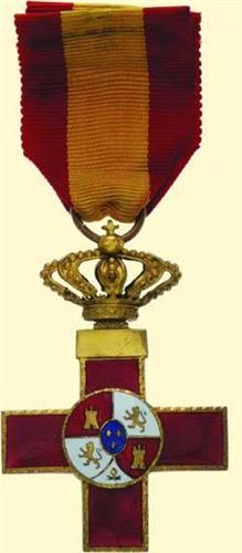 Knight's Cross (1st class) - 1st type for Merit in Times of War; breast badge, bronze gilt, obverse red enamelled, superimposed medallion enamelled, with royal crown, reverse blank, with white enamelled superimposed medallion, engraved number; with later ribbon.