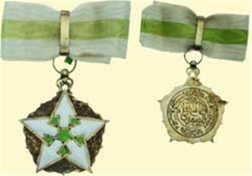 Commander's Decoration (3rd class); neck badge, silver gilt, obverse partially enamelled, reverse with Arabic inscription, Arabic hallmarks; with suspension loop and original (faded) ribbon. Small signs of