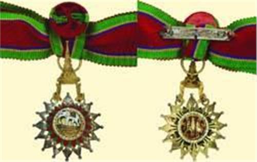 Officer's Decoration; breast badge, silver partially gilt, both sides medallions enamelled, with crown suspension and original ribbon bow with rosette for ladies. Very fine quality with patina.