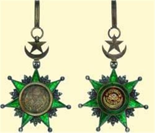 Commander's Decoration (3rd class); neck badge, silver partially gilt and enamelled, obverse medallion with gold onlay, gilt grained crescent and star above, with original suspension loop, French hallmark and maker's mark (?). Excellent old French quality in near best condition, with fine patina!