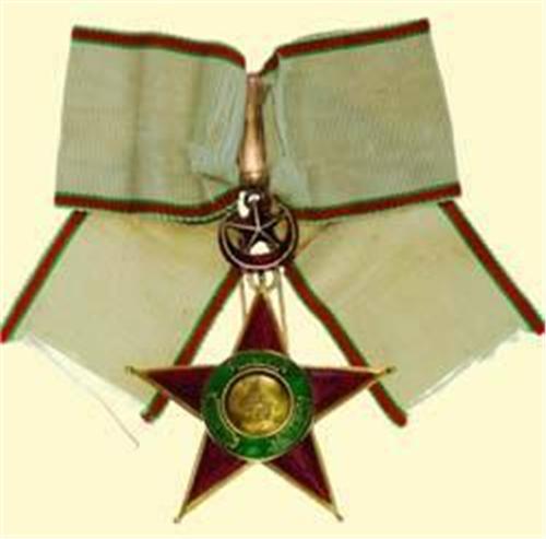 Decoration of 1st Class (?); sash badge, gold, obverse enamelled, with enamelled crescent and star above and suspension loop with two long pins and original old ribbon bow; diam.: ca. 49 mm, reverse with horizontal pin; light hollow badge of smaller size as usual. Excellent European (?) quality with some small flaws with soldering. Very attractive and rare, small signs of wearing and polishing.