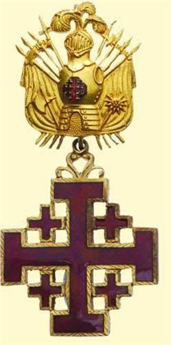 Knight's Cross; neck nadge, bronze gilt, cross both sides enamelled, trophy - suspension with enamelled Jerusalem cross. Simple Italian quality in small size (38 x 80 mm).
