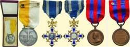 Jubilee Cross Pius XI 1925, silver gilt and enamelled, with Papal symbol above, illegible mark on suspension ring, with original ribbon. Bronze Jubilee Medal Pius XI 1928, bronze, with ribbon; Silver Jubilee Medal Pius XI 1933, bronze silver plated and frosted, with ribbon and original cardboard box. With card of the former holder; attractive lot!
