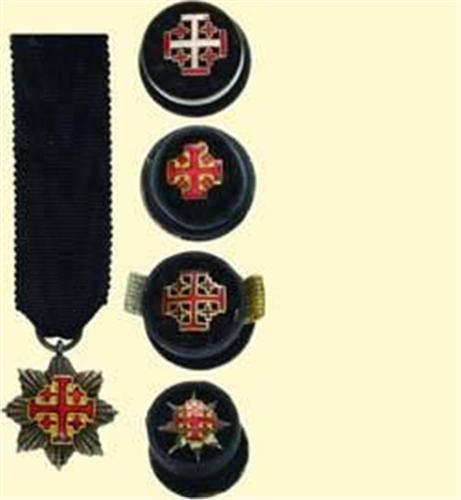 Lot of Five Miniatures; one miniature breast star, silver, with bronze gilt and enamelled superimposed badge, with ribbon; four various buttonhole rosettes with miniature inlays. One with enamel damage, otherwise very fine!